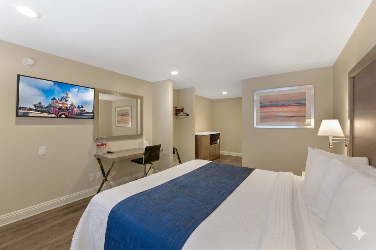 Cynthia Olivo2025-09-07 Very clean, quite management very nice. Alex Butler2025-09-05 No complaints. Amazing place to stay for the price MJ2025-08-28 Lovely location and lovely clean rooms, nice area!! Comfy bed! Rana Tallo2025-08-22 The establishment is exceptionally clean, and the bathroom has been recently renovated. I wholeheartedly recommend it to anyone planning a visit to Disneyland. We certainly intend to return in the future. Ricky Ramirez2025-08-17 Perfect location if you are trying to go to Disneyland. It's like the rest of the reviews say a 15-20 minute walk or a cheap Uber ride to the park. Rooms are big and clean. The bed was comfortable. Would definitely stay here again next time we come back to Disney. Candice2025-08-11 The 414 was a little gem. Very clean. A mile from the Disney parks. The pool was wonderful! It operates like an Airbnb so you message the operator for assistance. Very clean! No shuttle to parks so prepare to walk or Uber. Taylor Heredia2025-08-10 Hotel 414 was everything we needed on our short trip to Disney. We really liked the fact that parking was included in our booking and was only a $6 Lyft ride to the park. The room was very clean and the bathrooms were equipped with lots of towels and soap! Checking in was super easy and would definitely stay again! Viviane Gonçalves Cordeiro2025-08-03 Great place! Extremely clean, quiet, and easy access! A leisurely 15-minute walk from the Disney parks.